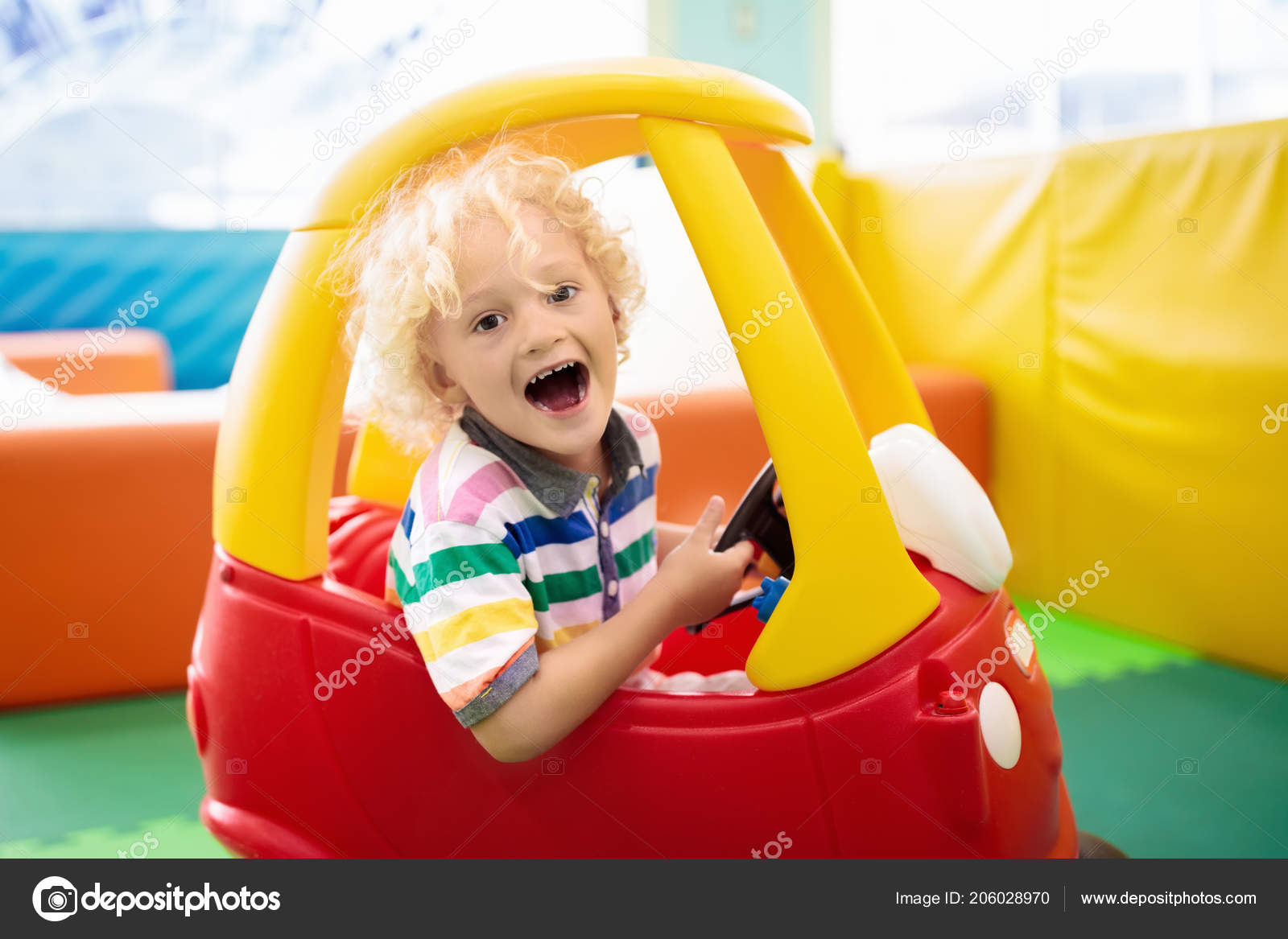 Child Riding Toy Car Little Boy Playing Big Bus Kid Stock Photo By C Famveldman 206028970